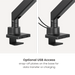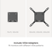 Dla większej elastyczności dołączone są adaptery VESA, dzięki którym ramię jest kompatybilne z różnymi wzorami VESA. Czyni to uchwyt odpowiednim między innymi dla dużych ekranów, takich jak Samsung Odyssey Ark 55”. Dodatkowo praktyczna płyta VESA z szybkim zwalnianiem oraz montaż od góry biurka umożliwiają szybką i prostą instalację.
